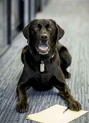 Tag excels in boosting team morale with tail wags, providing stress relief, and creating a positive office vibe. Tag's popularity, evident in his record for the most back scratches in a day, reflects his role in fostering joy at CP Law. Upon request, Tag is happy to rest in his office to ensure a seamless experience.